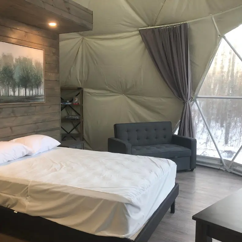 At Glamping InStead, we are one of the first to offer a glamping experience in the Stead, Manitoba area. Guests stay in a 26ft, solar-powered dome with a wood-fired hot tub. The dome offers all the comforts of home while still providing a retreat in the wilderness.